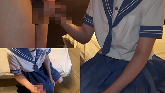 【足コキ・手コキ】水色セーラー服ザーメンぶっかけ(熊●・花●)
