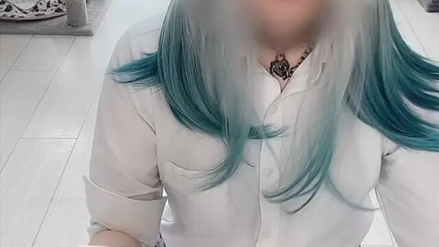 Amature GF gives handjob with big ass in cosplay anime outfit